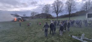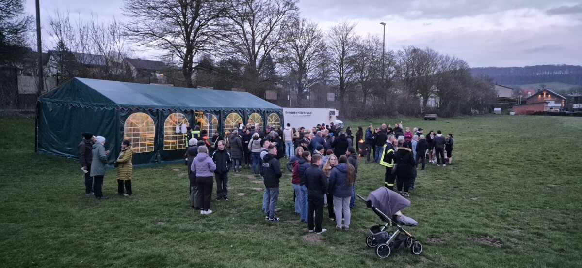 Um 19:50 Uhr wurde das Feuer schließlich entzündet und sorgte sofort für eine stimmungsvolle Atmosphäre. Bei Grillwurst und Getränken kamen die Besucher ins Gespräch, tauschten Neuigkeiten aus oder genossen einfach den Anblick der Flammen.